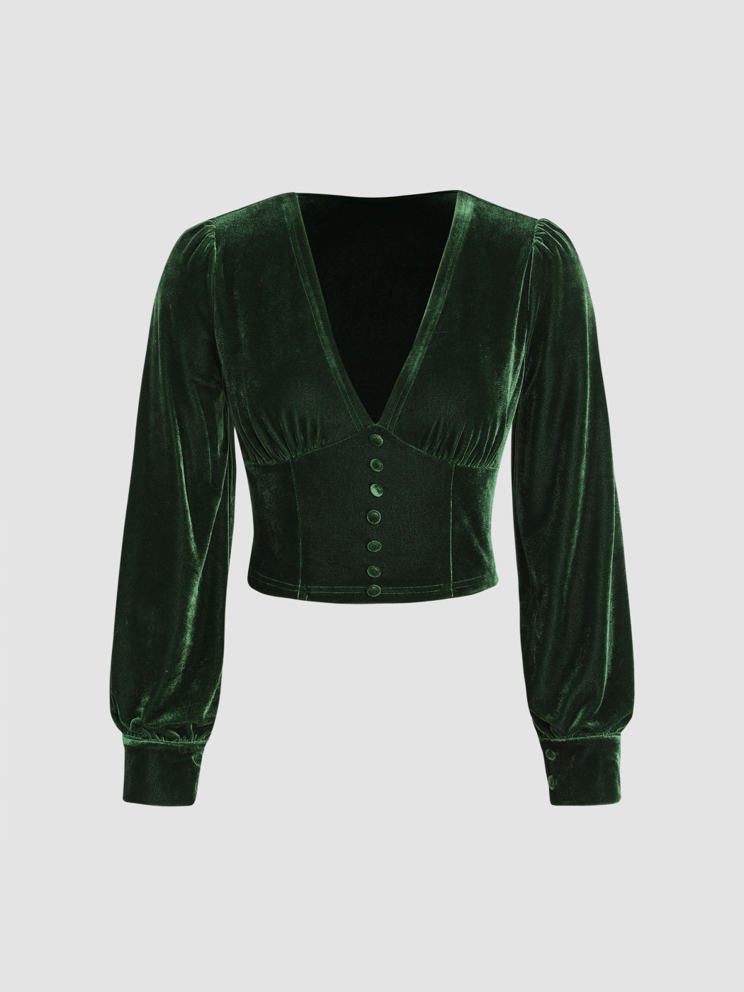 Elevate your evening look with this luxurious velvet crop top. Designed with a deep V-neckline and long fitted sleeves, it balances elegance with a modern edge. The plush velvet fabric offers a soft, sophisticated feel, while the cropped silhouette makes it perfect for pairing with high-waisted skirts, trousers, or tailored blazers for a chic finish.